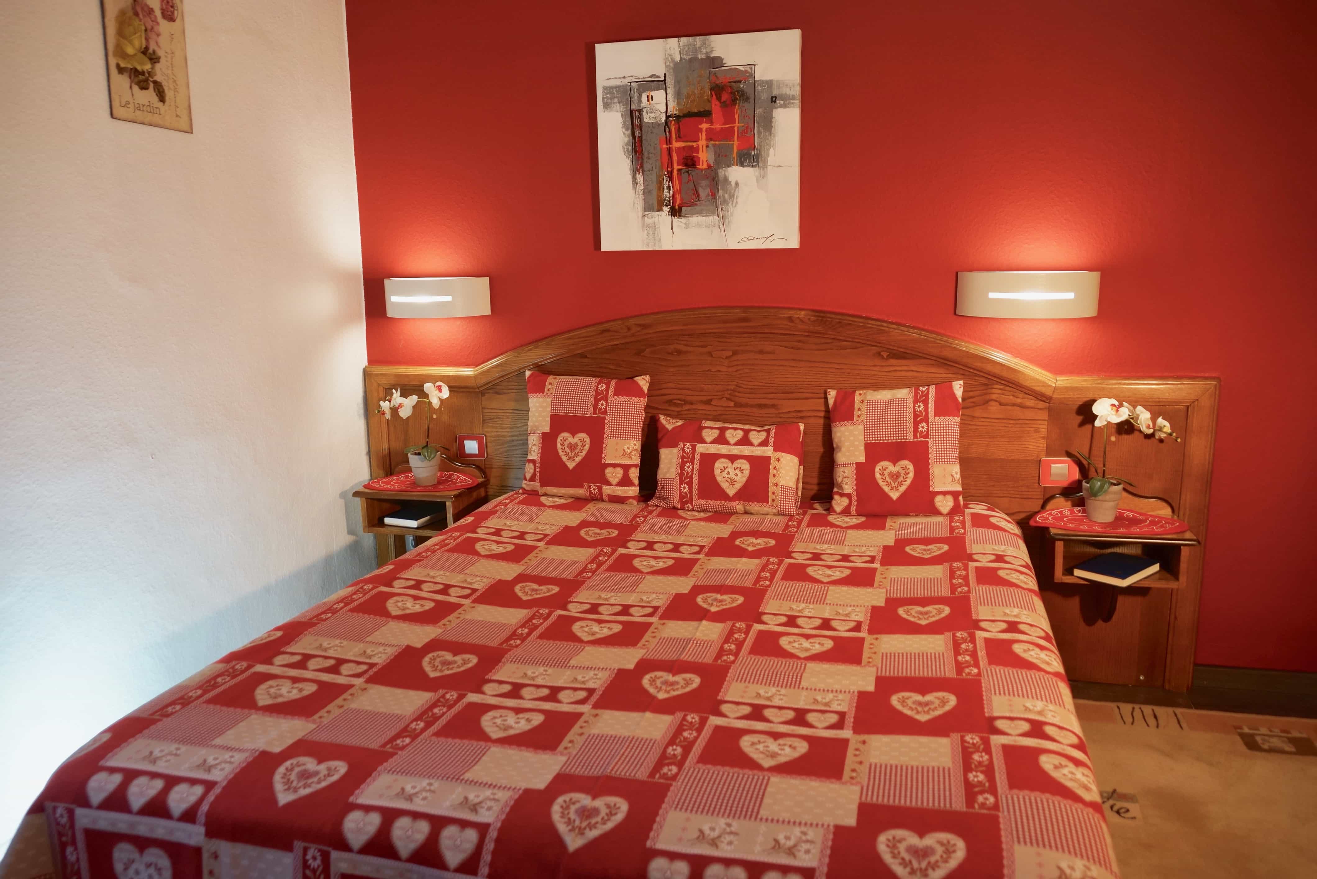 une 1ère chambre cocooning (grand lit Queen Size neuf 160 x 200) armoire, tables de chevet, chaises, porte valise pliant…